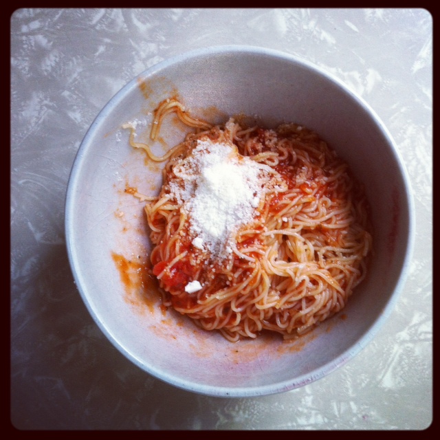 Angel Hair pasta Prego Traditional sauce brown sugar parmesan cheese